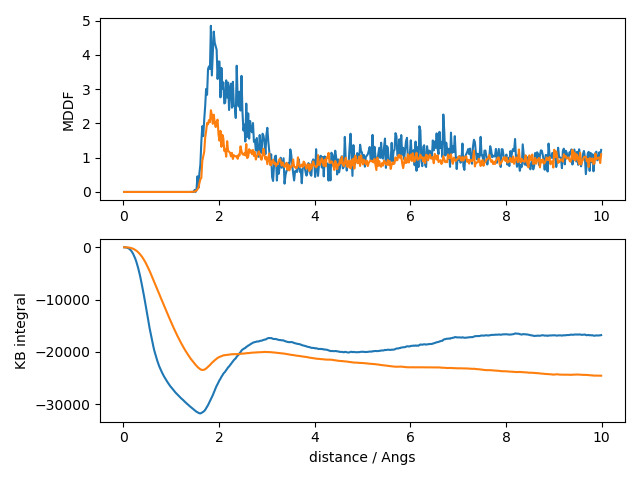 axs[1].set(xlabel="distance / Angs", ylabel="KB integral")